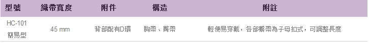 簡(jiǎn)易型安全帶HC-101參數(shù):